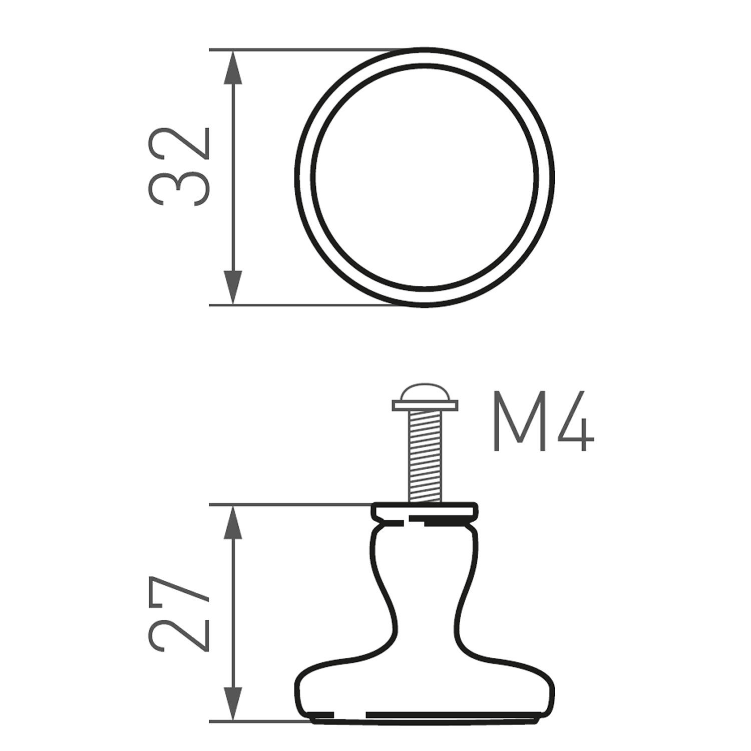 Deze meubelknoppen zijn rond van vorm met een diameter van 32mm en een diepte van 27mm.