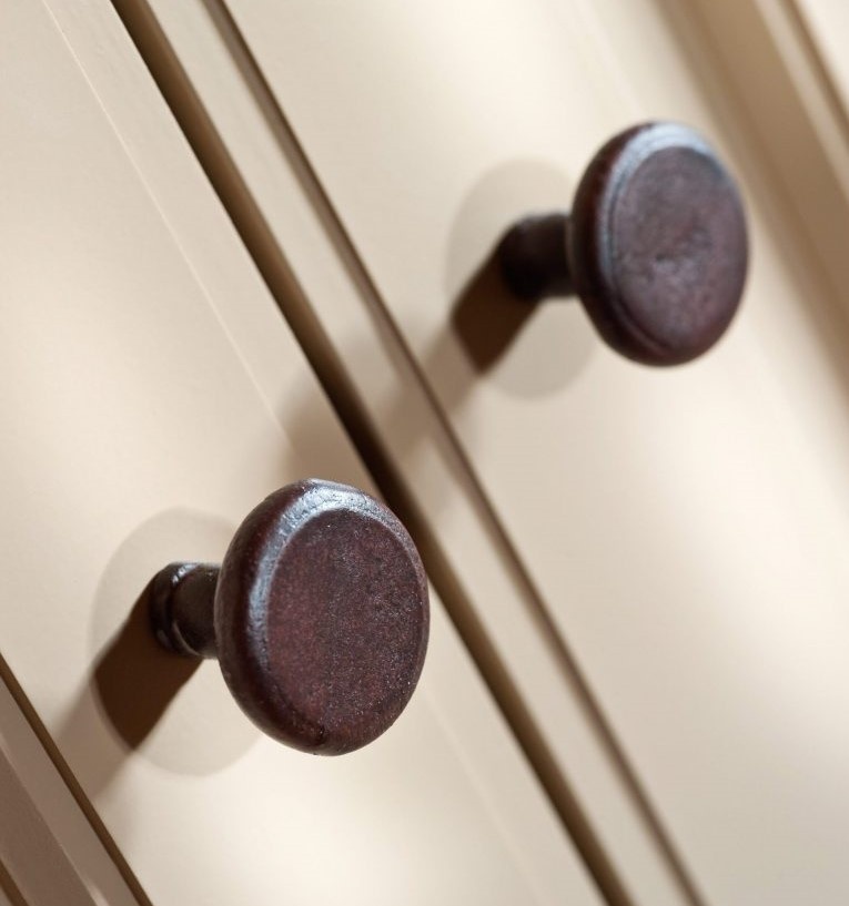 De koestkleurige meubelknop wordt per stuk geleverd inclusief bevestigingsmateriaal, 1 x M4.