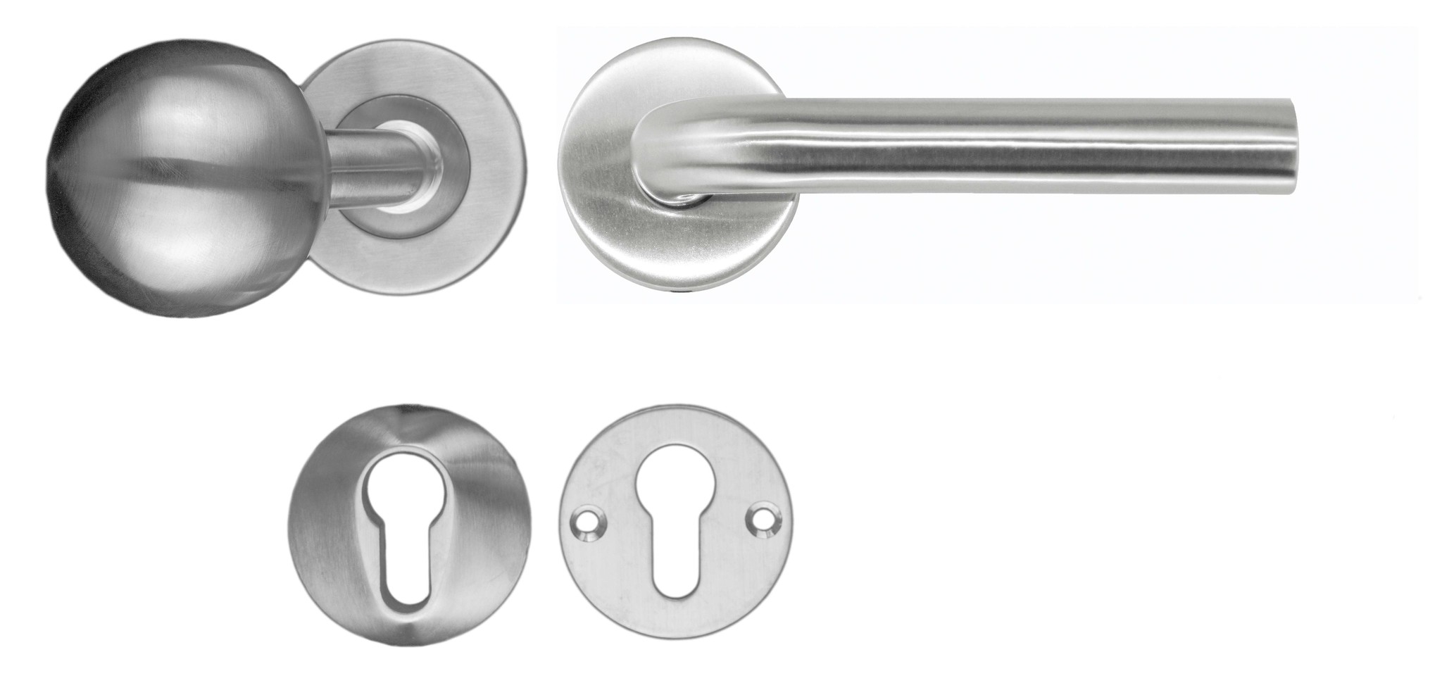 Beschrijving Vaste knop aan de buitenzijde met deurklink voor de binnenzijde en veiligheidscilinderplaatjes