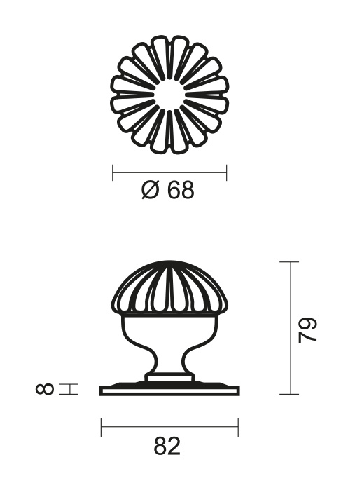 De 'Top Mandarin goud' deurknop komt in totaal 79mm naar voor en heeft een Ø van 68mm. Het rozet waarop deze knop staat heeft een Ø van 82mm met een dikte van 8mm.