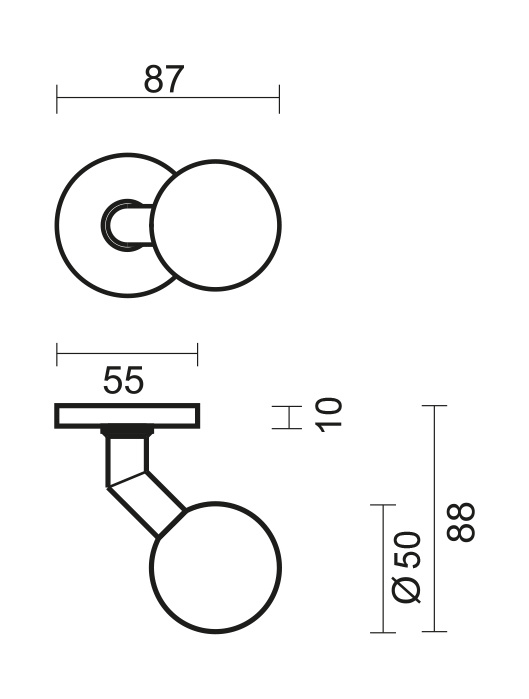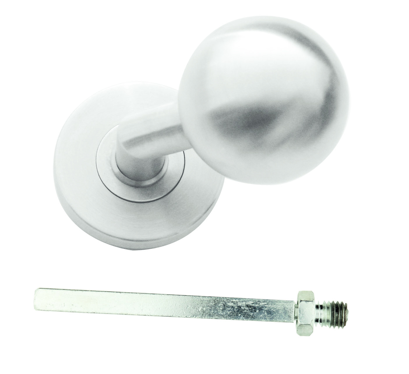 Deze vaste deurknop "BS50" is gemaakt uit massief RVS. Hierdoor is de deurkruk ook buiten te gebruiken. Het betreft een  bolvormige knop met een Ø van 50mm die onder een hoek van 45° staat op een rozet dat 10mm naar voor komt. In het totaal komt deze knop 88mm naar voor.