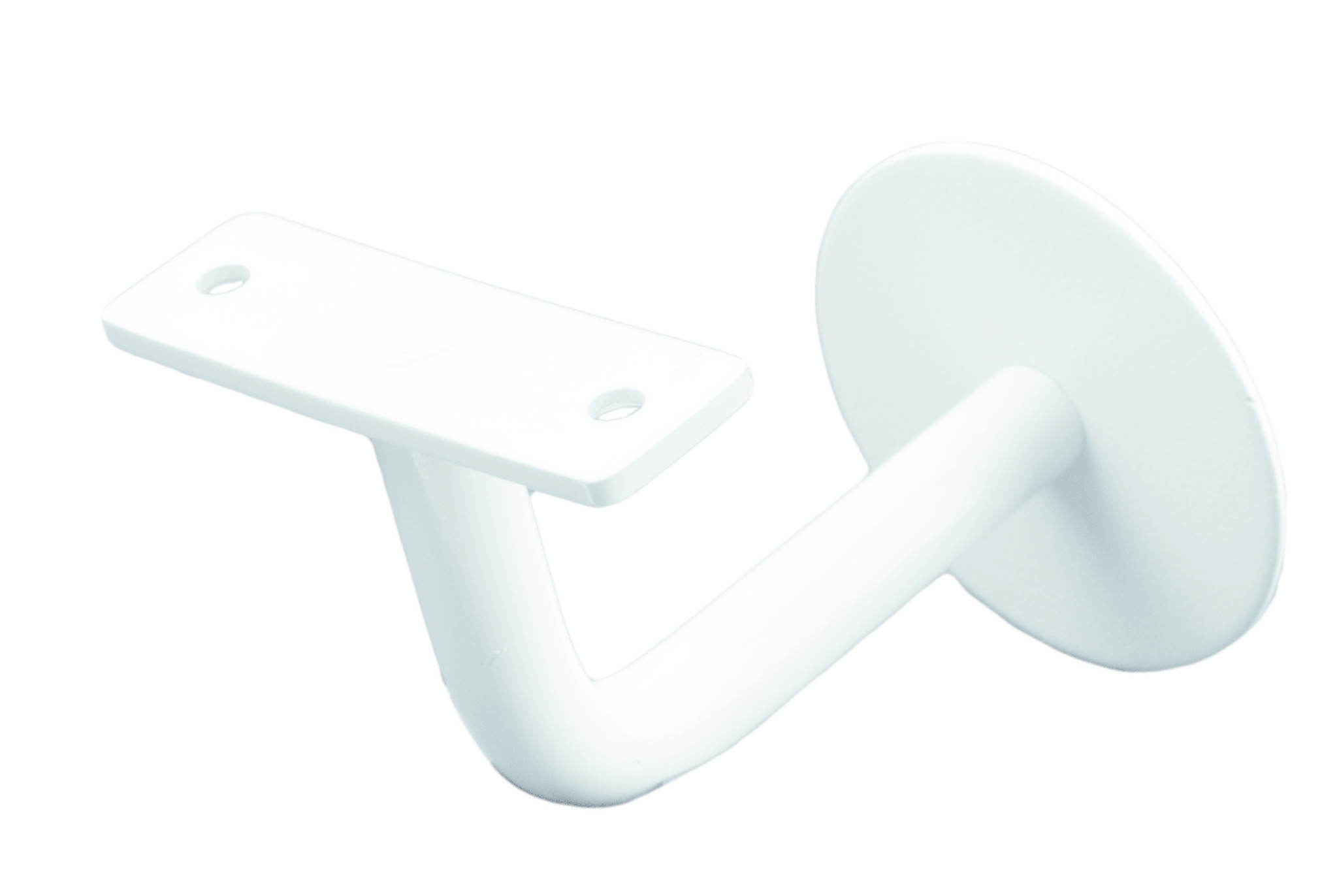 De witte leuninghouders zijn voorzien van een rond rozet met een diameter van 60mm en hebben een matte structuur afwerking.