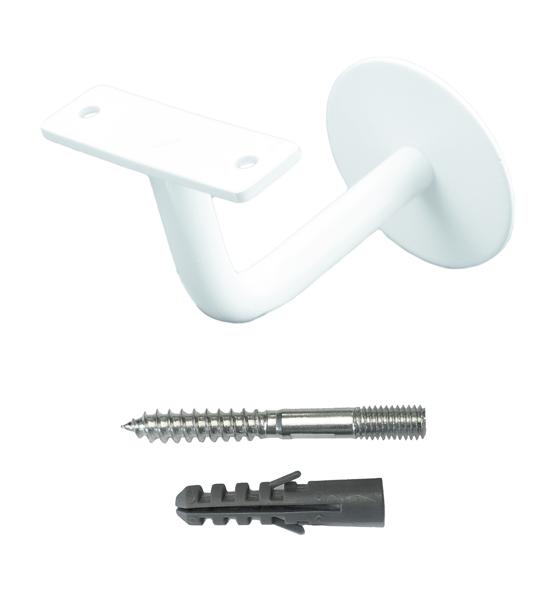 Deze witte trapleuninghouders kunnen onzichtbaar bevestigd worden met meegeleverd plug en schroef.