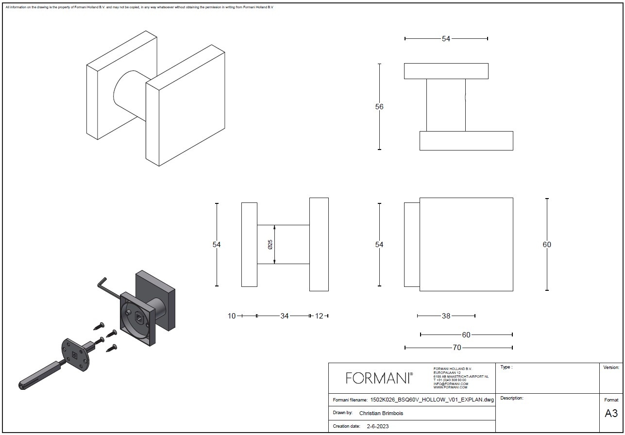 De deurknop BSQ60V van Formani: stijlvolle afwerking, hoogwaardige materialen en tijdloos design, perfect voor elke deur.