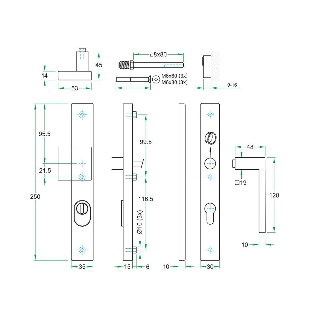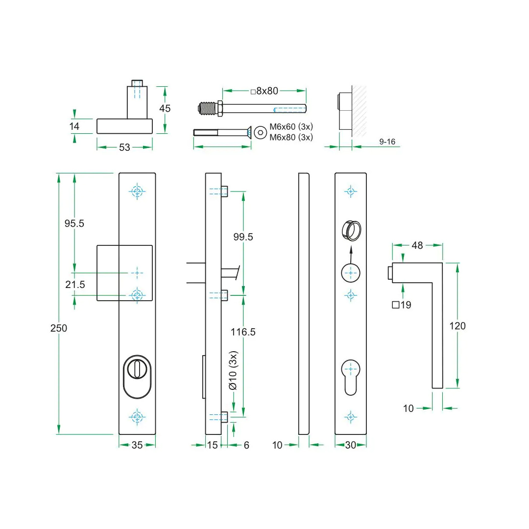 Het binnenschild met verdekte schroefbevestiging zorgt voor een strakke en moderne uitstraling, zonder zichtbare bevestigingspunten. Geschikt voor deurdiktes van 37-57 mm en toepasbaar op deuren van aluminium, hout, PVC en staal, maakt dit beslag veelzijdig inzetbaar in zowel woningen als in gezondheidszorg en diverse typen gebouwen voor intensief gebruik.