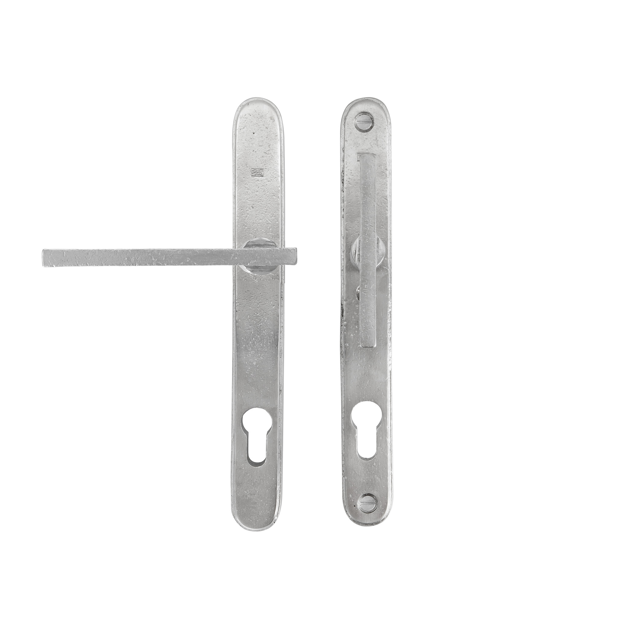 Beschrijving Smal mat wit bronzen veiligheidsgarnituur met een deurklink PH2017 gecombineerd met een deurklink PH2017"T". PZ asmaat van 72, 92 of 110mm mogelijk