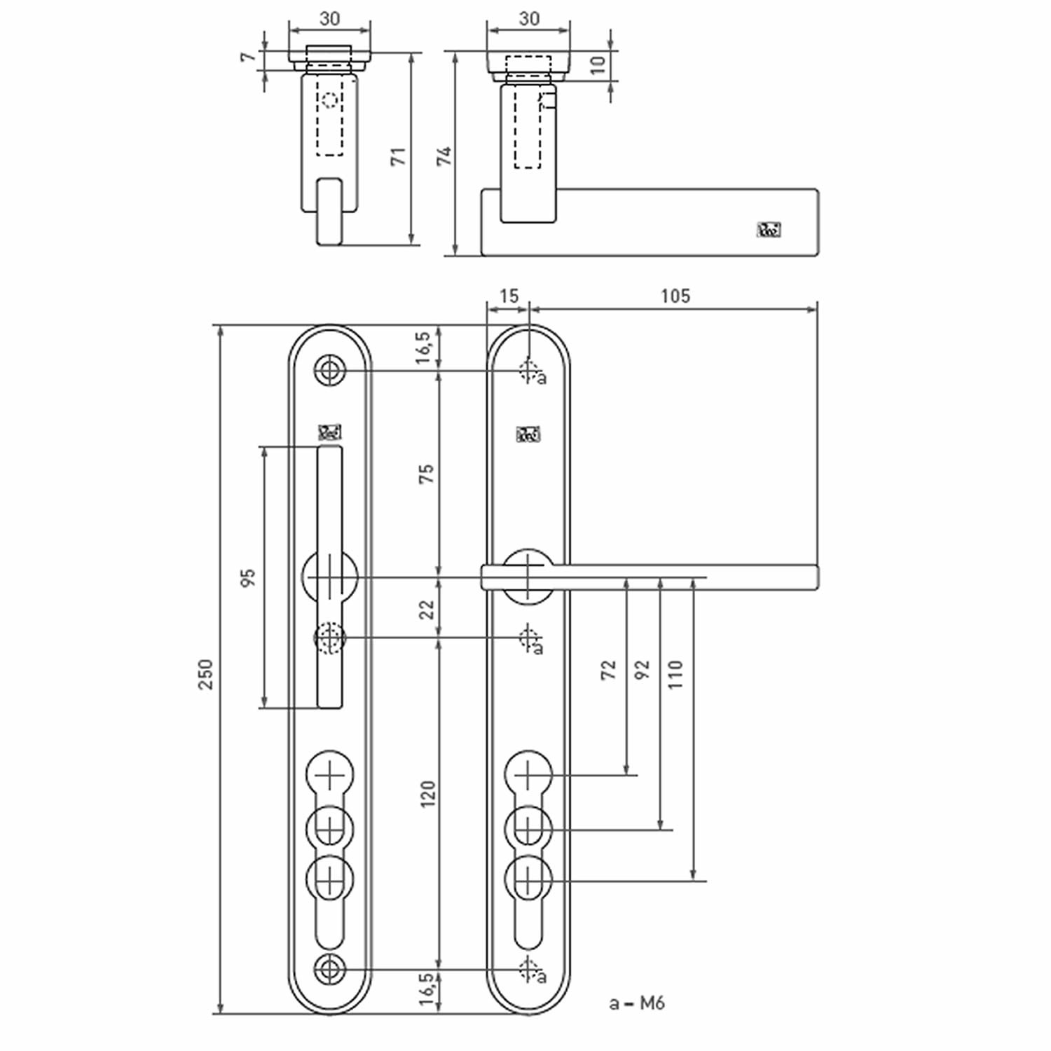 Het smalle schild van dit model is 250x30mm en verkrijgbaar met de standaard PZ asmaten van 72, 92 of 110mm. De gewenste asmaat (72, 92 of 110mm) kan je hierboven in het scrol menu selecteren.