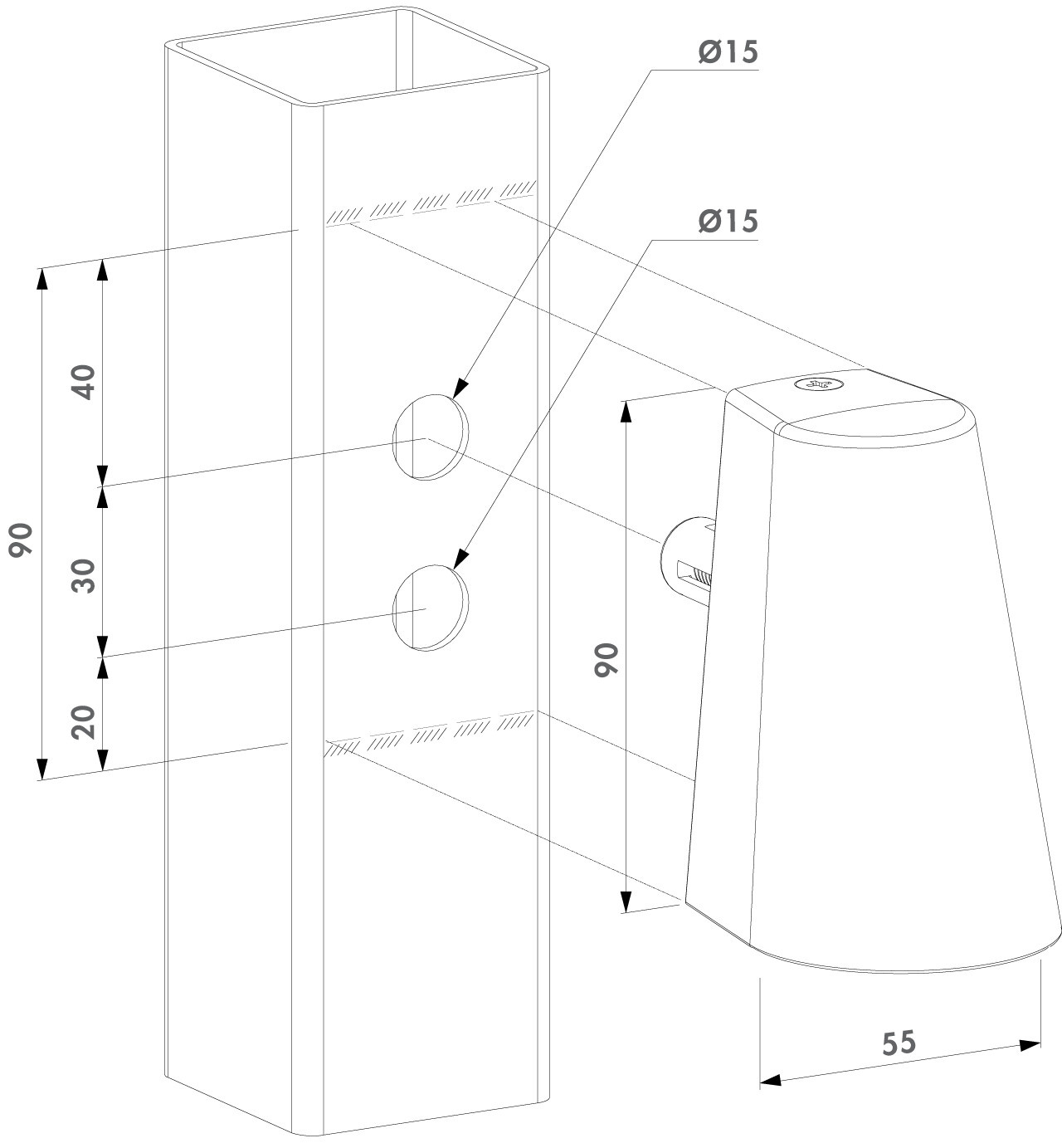 Beschrijving Locinox design LED verlichting TRICONE voor paalverlichting dat zorgt voor een esthetische look