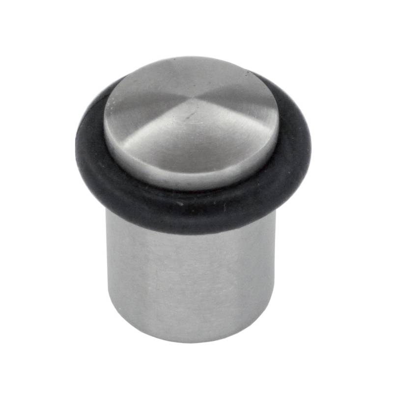 Kleine ronde RVS deurstopper met rubberen rand. Een deurstop beschermt enerzijds de deur en anderzijds de plint of muur tegen beschadigingen.