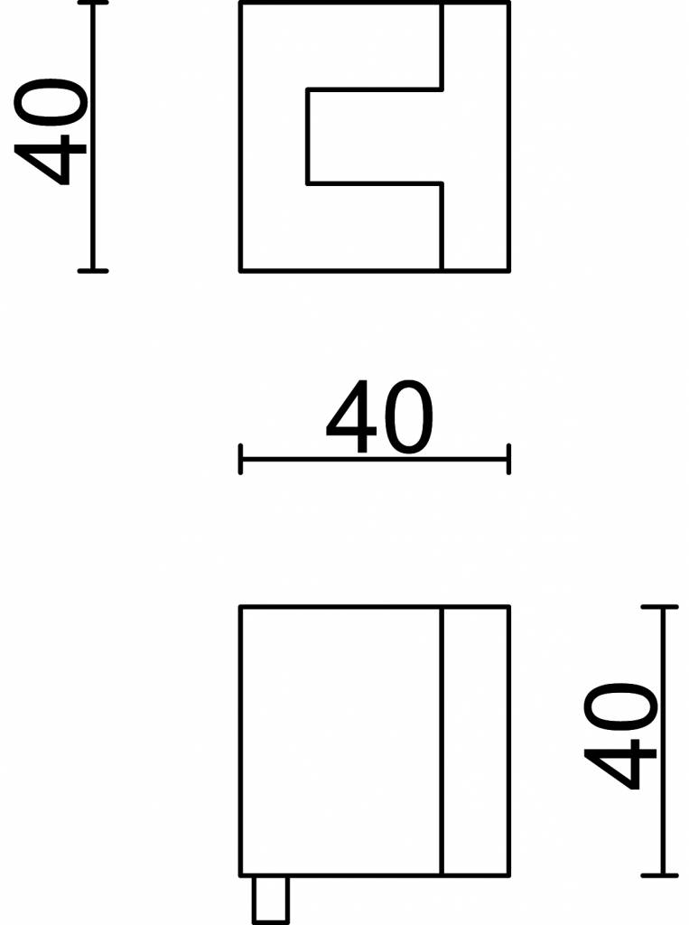 De deurstop is 40 mm in het vierkant en heeft een hoogte van eveneens 40mm.