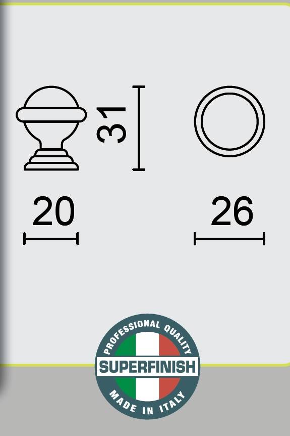 De nikkelen deurstop heeft een hoogte van 31mm, een diameter van 26mm en de voet heeft een Ø van 20mm.