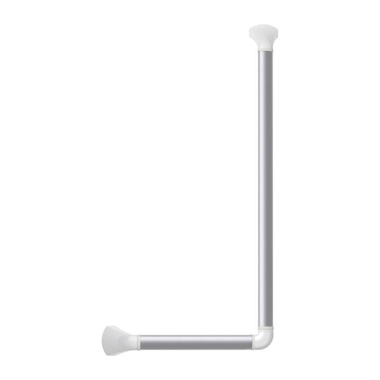 Uitgevoerd in geanodiseerd aluminium met een slijtvaste, witte coating biedt deze wandbeugel stevige ondersteuning in twee richtingen. Dankzij de hoek van 90° is hij ideaal voor gebruik naast het toilet, in de douche of bij het bad, waar extra grip en houvast gewenst zijn.