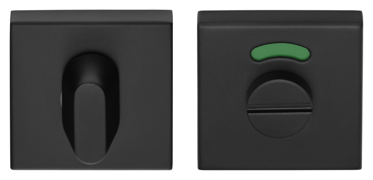 Beschrijving Vierkant mat zwart toiletgarnituur Basics BSQWC53 NM geschikt voor sloten met een opening van 5/6/7 en 8 mm - Groen / Rood indicator