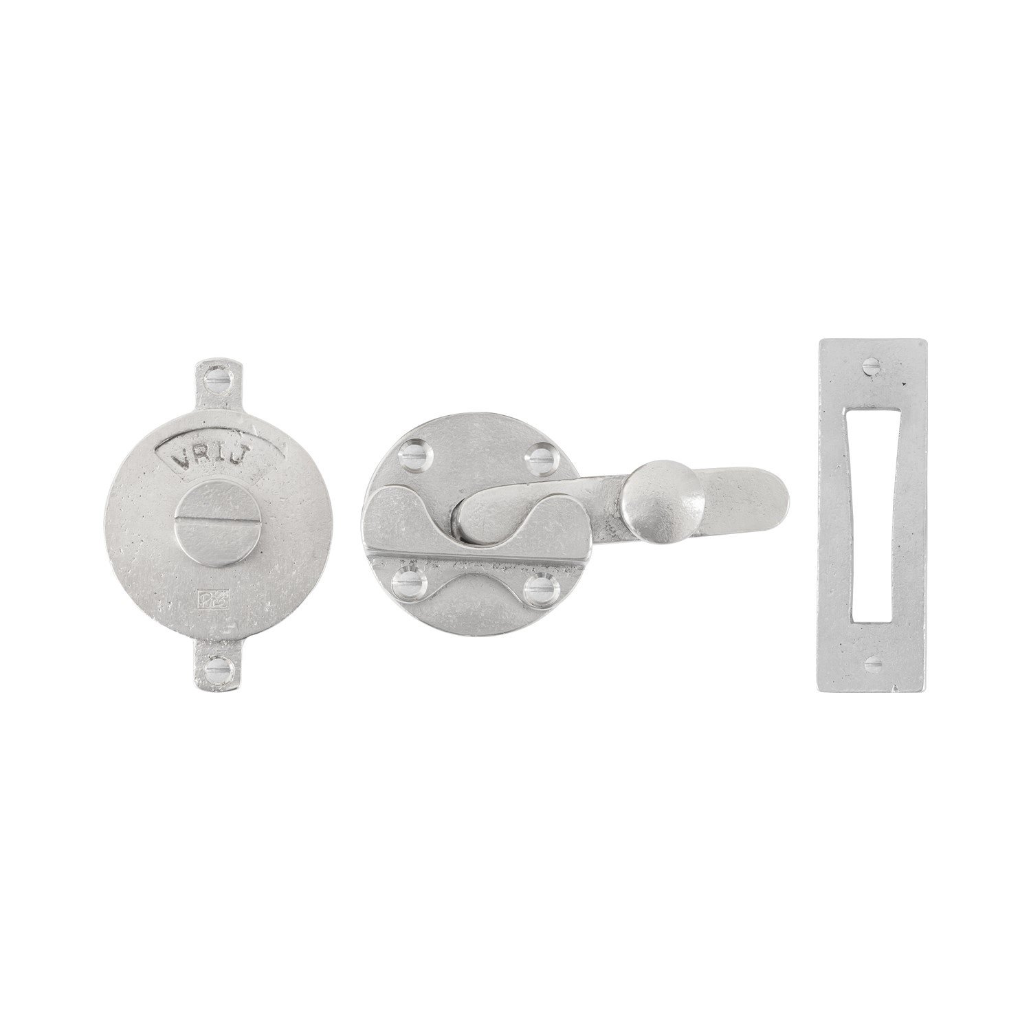 Het WC garnituur heeft een rechthoekig plaatje waarmee men de deur kan sluiten in het deurkozijn. Dit garnituur wordt als complete set geleverd inclusief bevestigingsmaterialen en vierkant stift 6x6mm met verloop hulzen voor openingen van 7 en 8 mm.