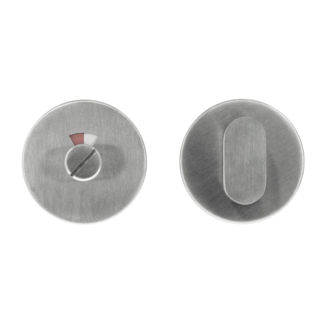 Beschrijving WC garnituur rond Shape inox geborsteld – RVS – met rood/wit indicator – set voor toiletdeur