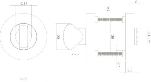 Beschrijving WC-sluiting 8mm rond Ø 52x10mm met nokken wit