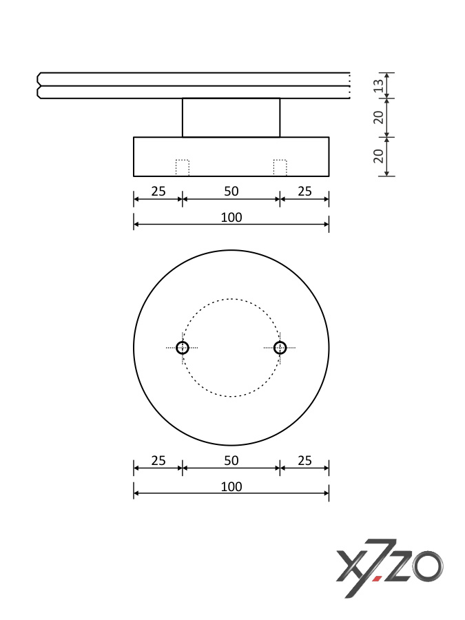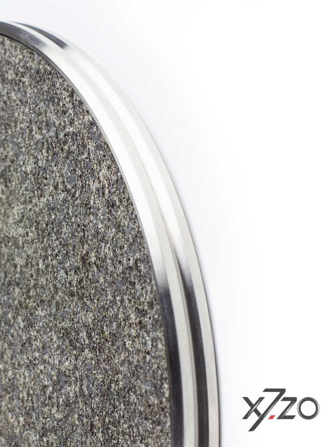 Beschrijving Ronde RVS design deurgreep Z54 - Ø 198 mm afgewerkt met mat zilveren steenfineer en een voet van Ø 100 mm geschikt voor binnen en buiten
