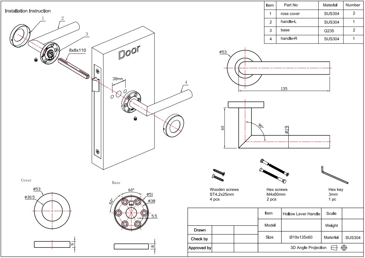 Alle modellen worden geleverd als volledige set (paar deurklinken met schilden) inclusief bevestigingsmaterialen.
