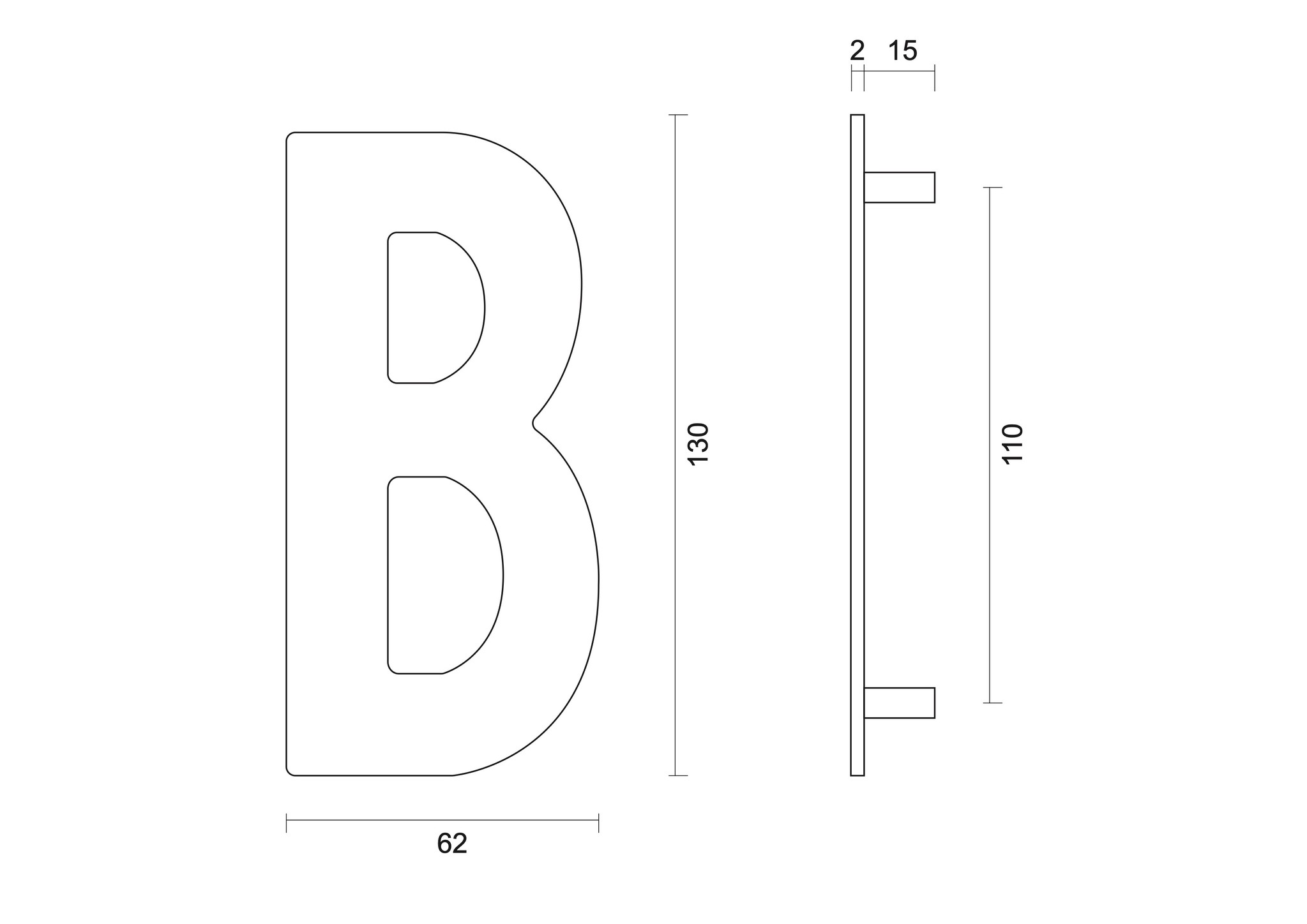 Deze zwarte huisletter "B" is geschikt voor gevelmontage, heeft en hoogte van 130 mm en een dikte van 2 mm.