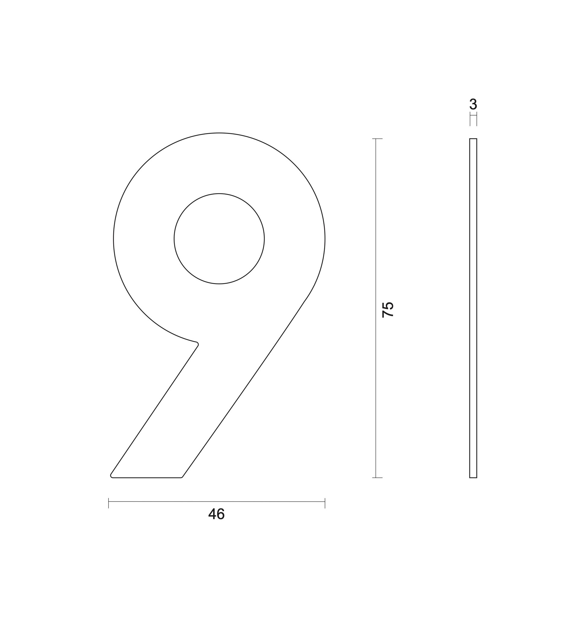 Het platte huisnummer heeft een dikte van 3 mm.