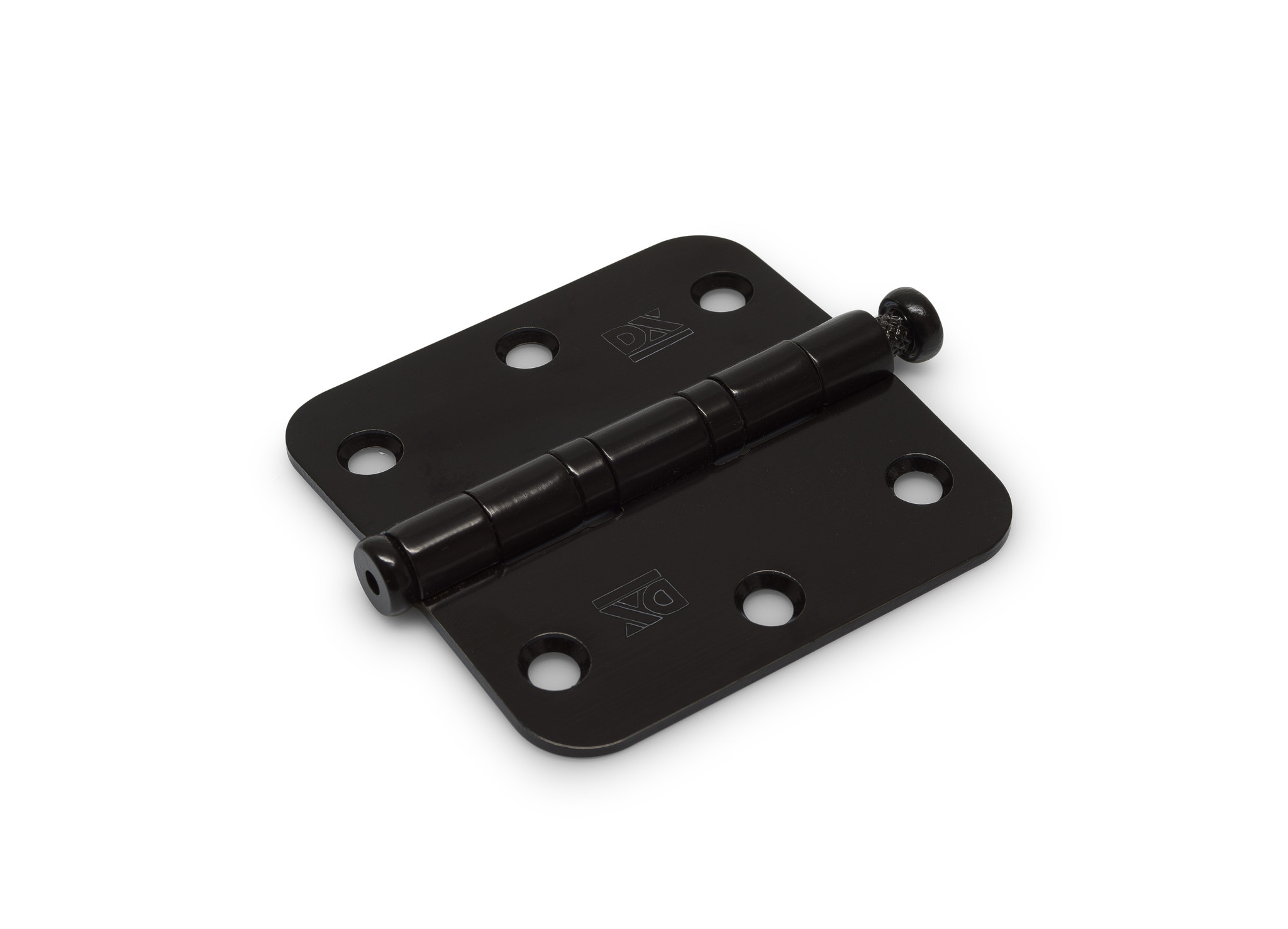Het scharnier heeft ronde hoeken waardoor ze zeer geschikt zijn om machinaal in te werken met een frees. De losse pen van dit scharnier is voorzien van een kartelrand waardoor de pen niet naar boven kruipt. Tevens zit er in de pen een gaatje waarmee een snelle demontage als je BV gaat schilderen mogelijk is. Je tikt door dit gaatje de bovenste pen makkelijk omhoog.