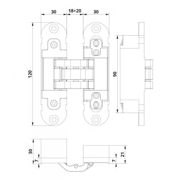 Beschrijving Zwart 3D scharnier - 120x30mm - Otlav Invisacta IN300120 - 60 kg draagkracht bij 2 scharnieren