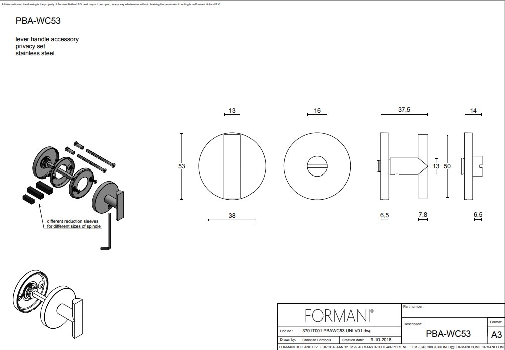 Dit PBAWC53 wc garnituur in het mat zwart wordt per paar geleverd inclusief bevestigingsmateriaal met vierkantstiften voor volgende openingen 5/6/7 en 8x8 mm.