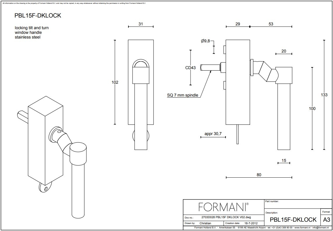 De raamkruk wordt per stuk geleverd inclusief bevestigingsmateriaal en bijhorende stift van 7x7mm. Het is mogelijk dat de stift met een lengte van 45 mm ingekort moet worden.