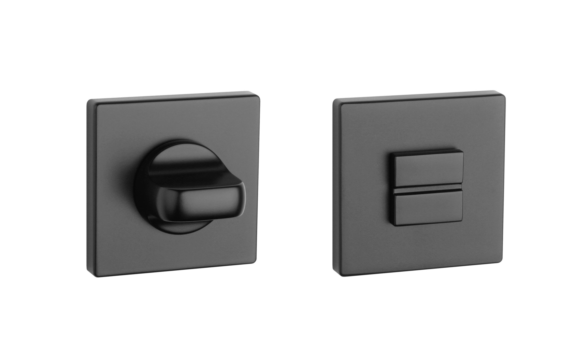 Dit zwarte WC garnituur heeft vierkante rozetten van 52x52mm met slechts een dikte van 5mm waardoor ze er zeer aantrekkelijk uitzien.