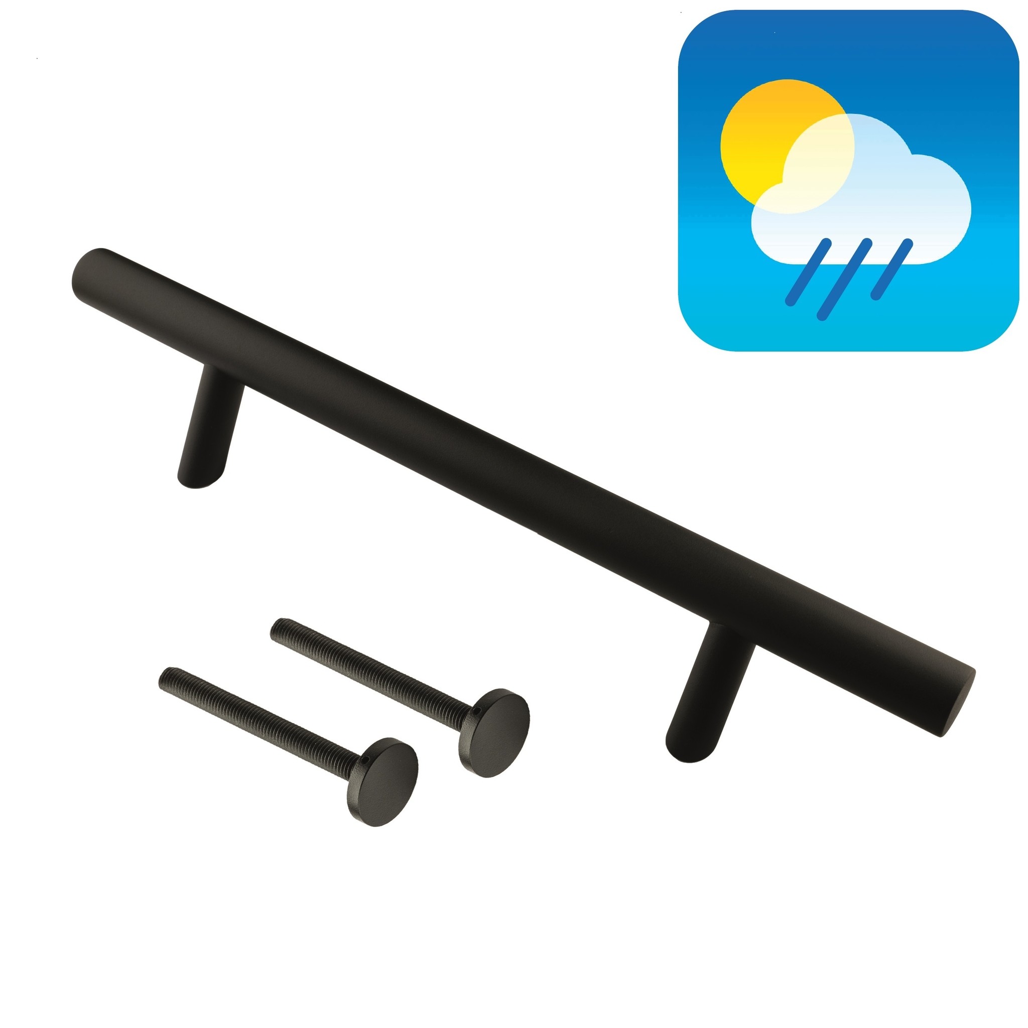 Beschrijving Moderne dikke deurgreep met een schuine voet afgewerkt met een zwarte UV bestendige structuur lak en een asmaat van 300 mm voor binnen en buitendeuren