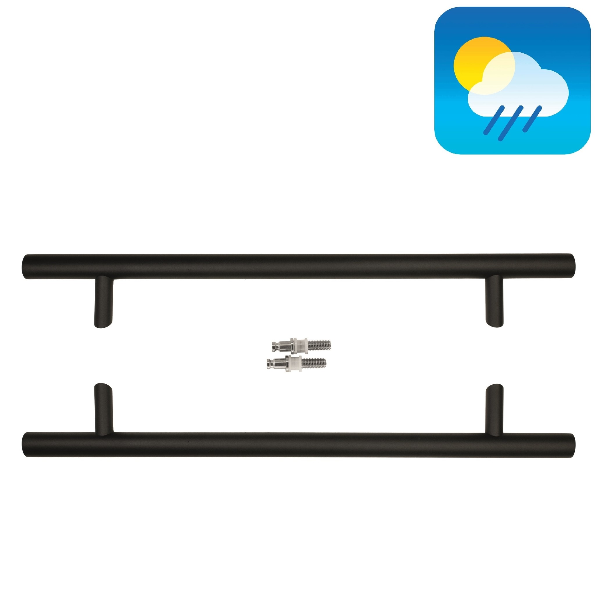 Deze zwarte deurgrepen worden per paar geleverd inclusief bevestigingsmateriaal voor doorlopende bevestiging op een glazendeur. Hiervoor dient men twee gaten met een Ø van 13 mm te voorzien.