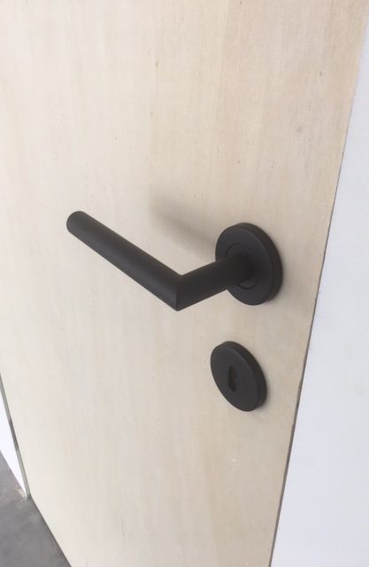 Het betreft een RVS deurklink waarna ze van een mat zwarte (gladde) coating laag zijn voorzien (RAL9005)wordt.