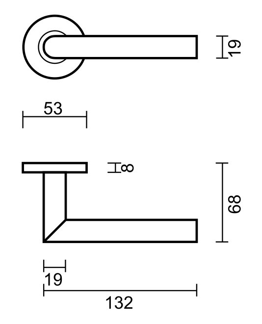 Deze moderne zwarte deurklinken "Rocker" staan op ronde rozetten van 53x8mm. De handvaten hebben een diameter van 19 mm en een hoek van 90°.