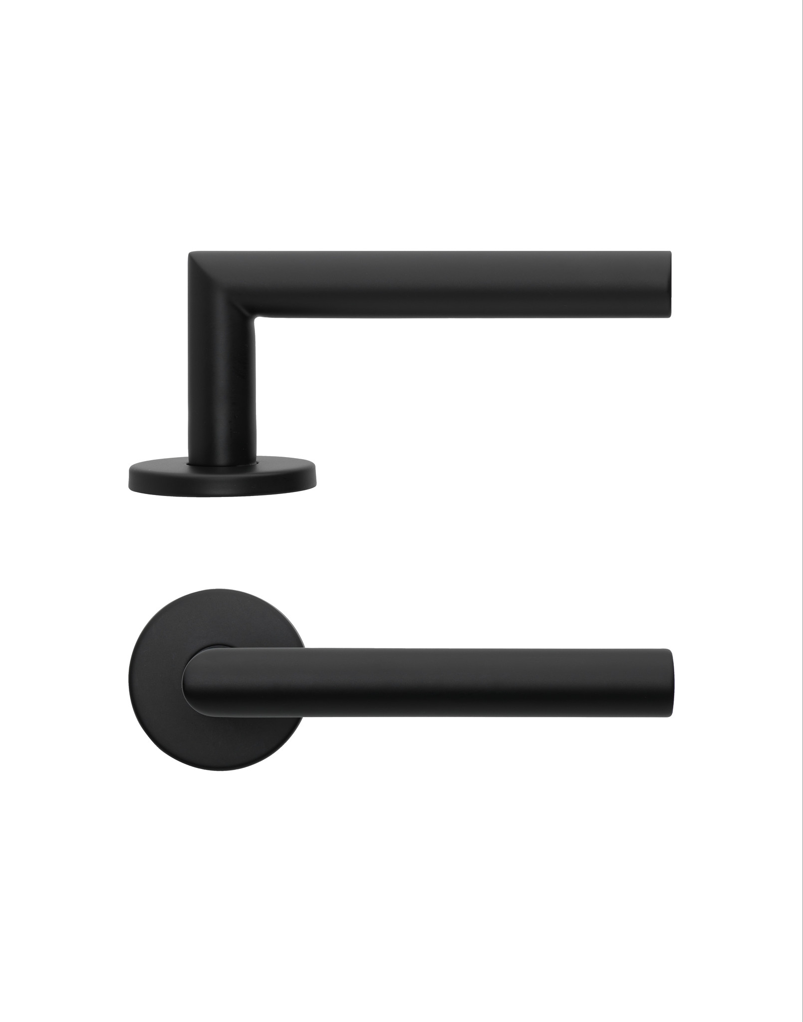 Zwarte deurklinken Basics LBII-19 geveerd op rond rozet zwart