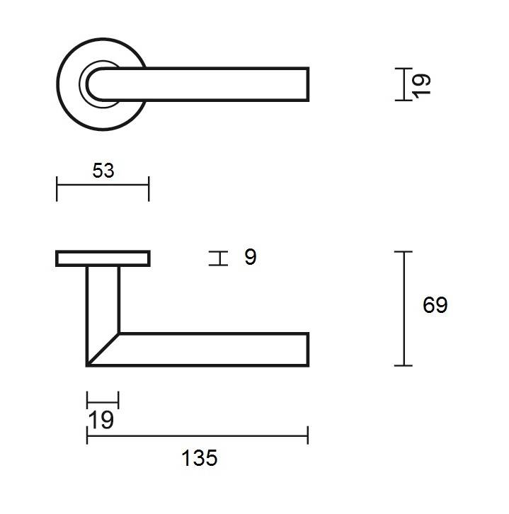 Zwarte deurklinken met een hoek van 90° en een diameter van 19mm.