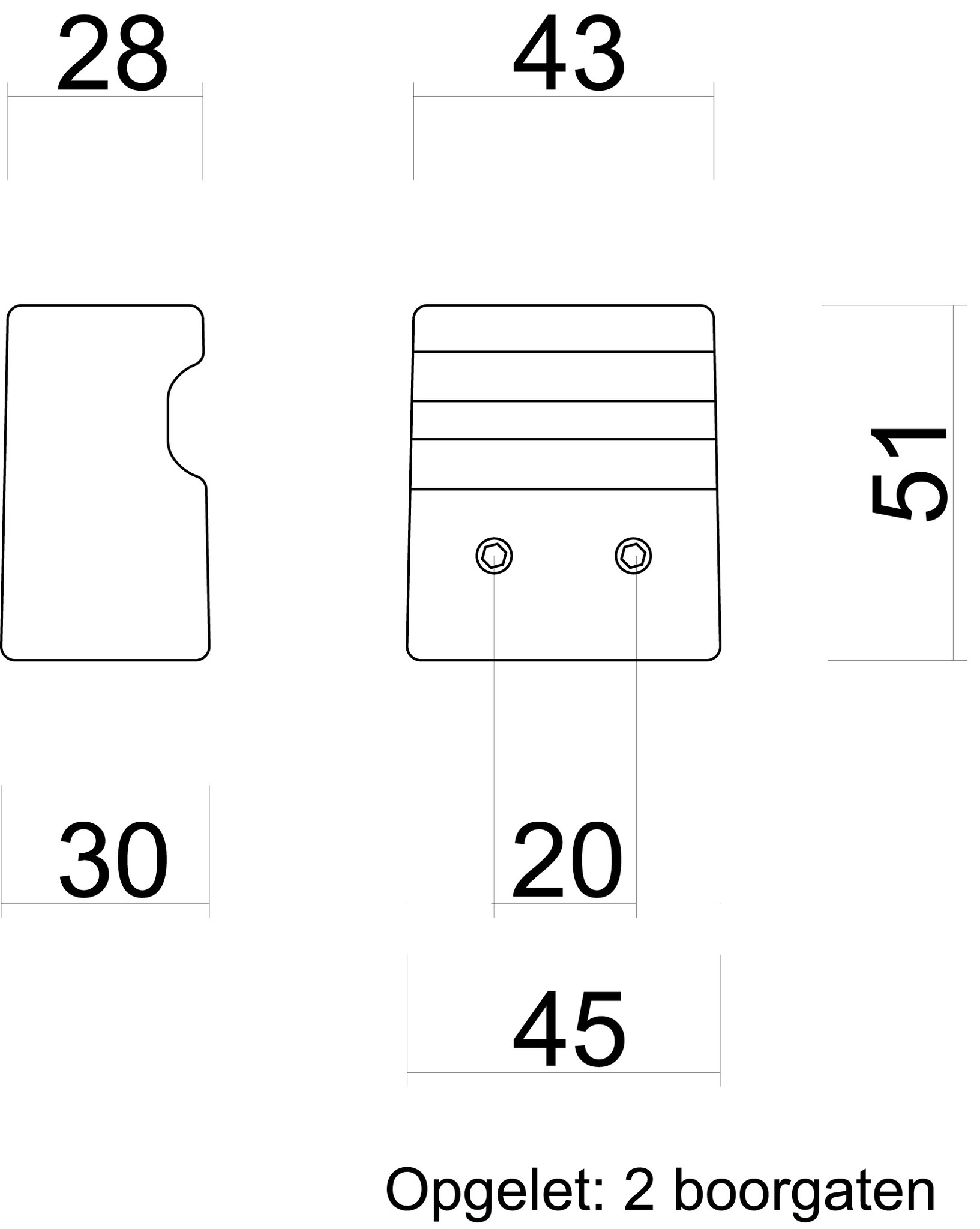 Deze set bestaat uit 2 vaste zwarte toppen welke geleverd worden inclusief bevestigingsmaterialen (2xM10) voor een deurdikte van 30mm-100mm. Deze bevestigingsmaterialen kan u op maat van uw deurdikte inkorten.
