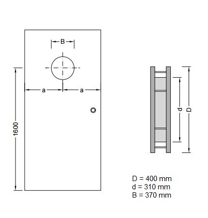 De diameter van de opening welke in de deur voorzien dient te worden bedraagt 370 mm.
